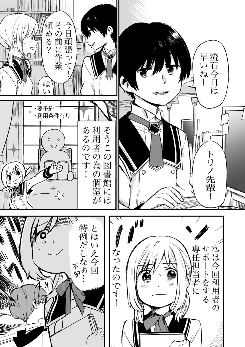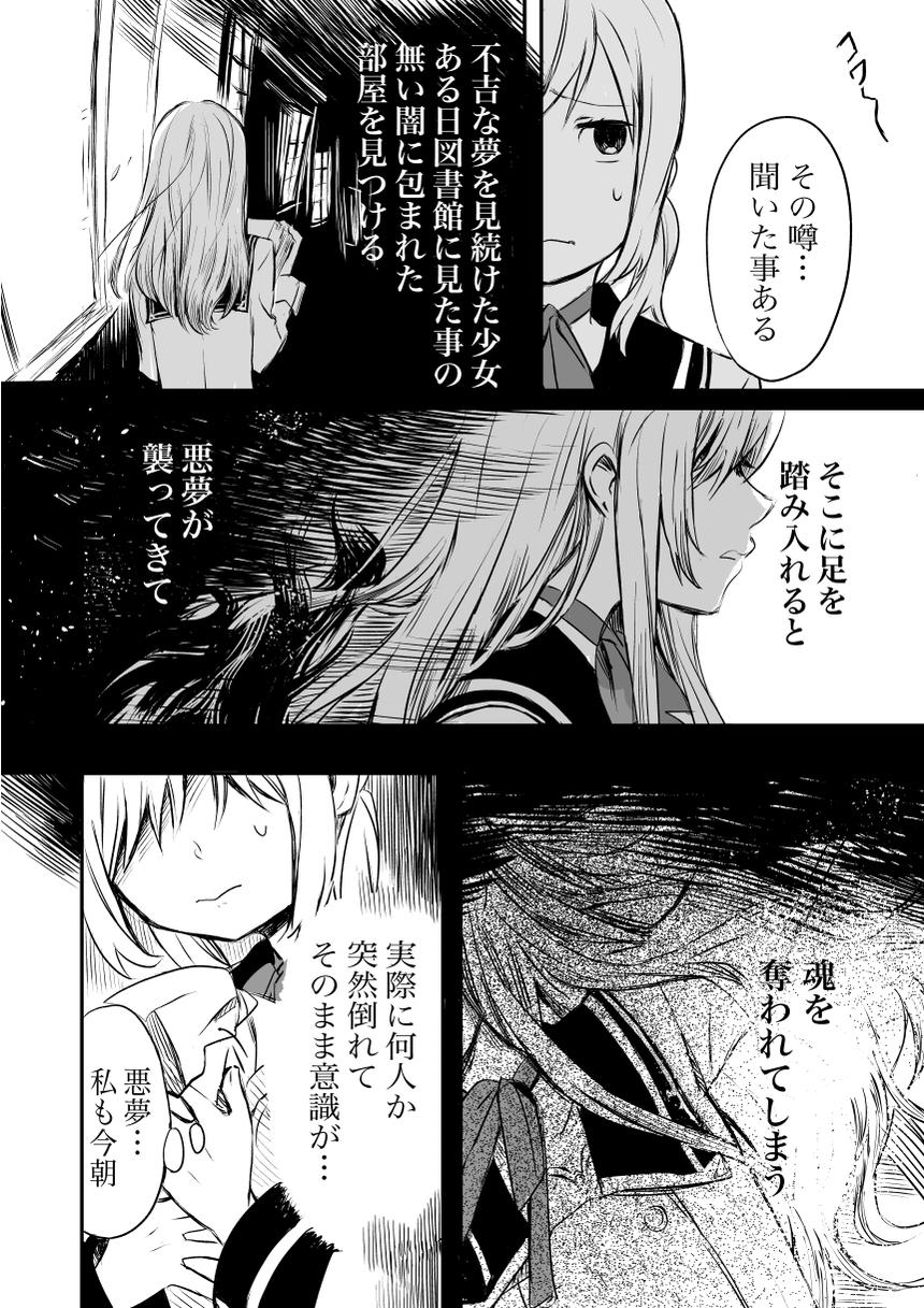 悪夢に悩まされていた図書館の研修生ミヤノアルカは先輩トリノと共に日々業務に取り組んでいた。ある日図書館内で黒い影に取り憑かれた謎の少年を見かける、不安に思ったアルカだったが同時に悪夢に襲われた研修生が突如姿を消すという噂を耳にする、ただの噂と先輩トリノに励まされつつ新しい業務を任されるもそれは謎の少年へのサポート業務だった!?︎