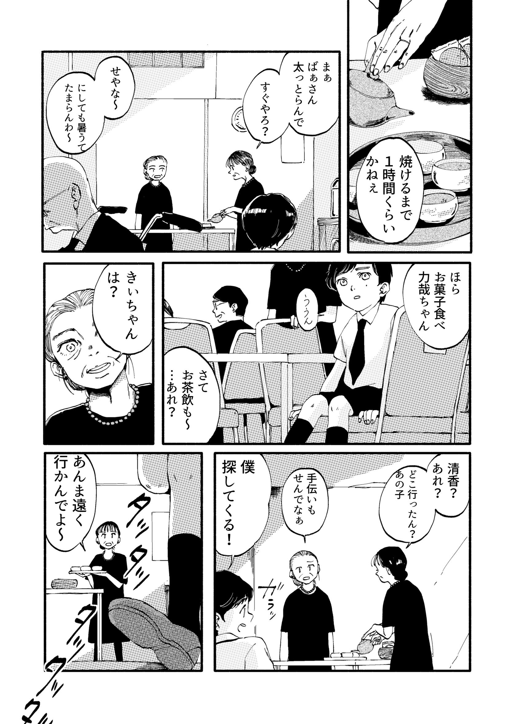 その隣で甥の力哉が「なんで空を見てるの?」と尋ねると、清夏は思わず「おばあちゃんは死んで、空のお星様になったんだよ」と答える。
